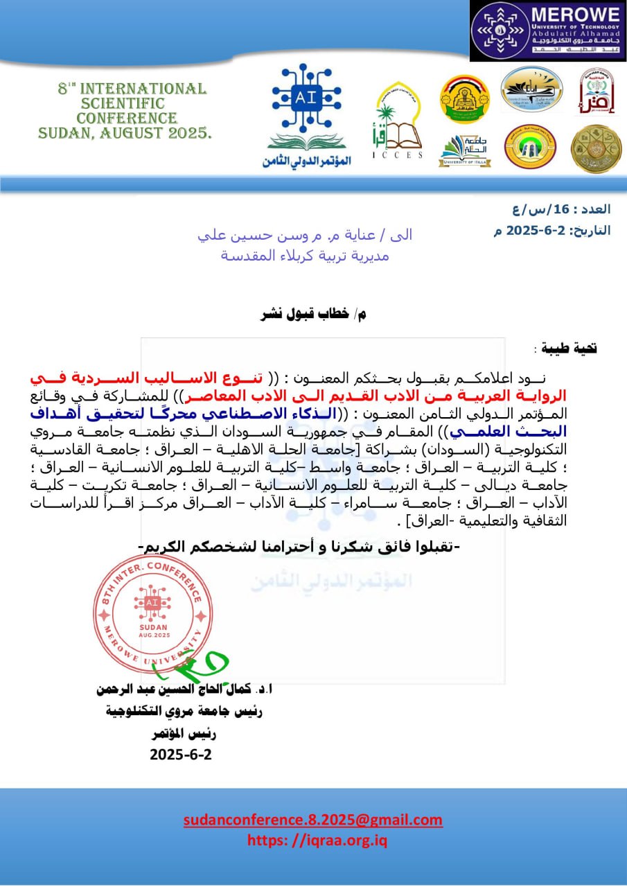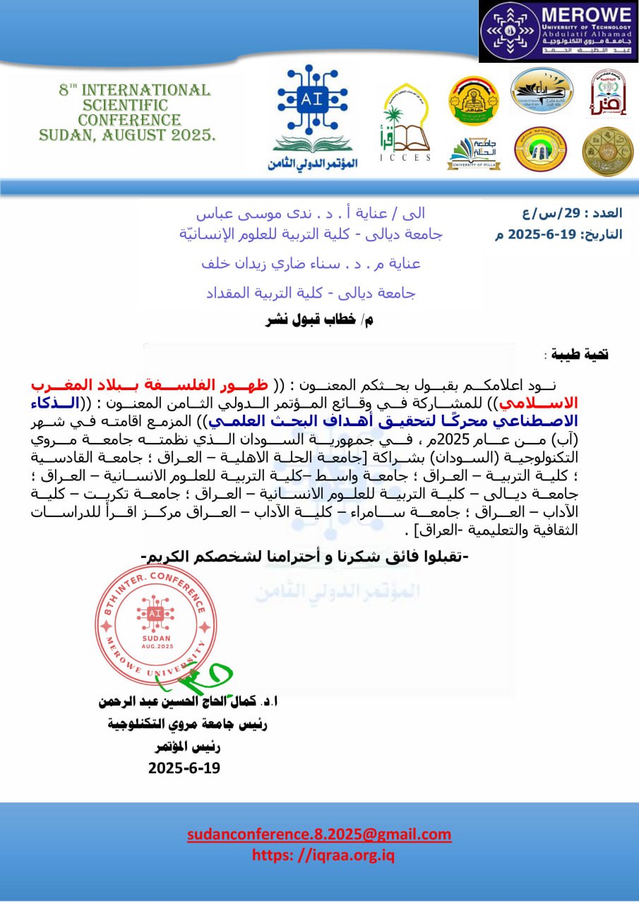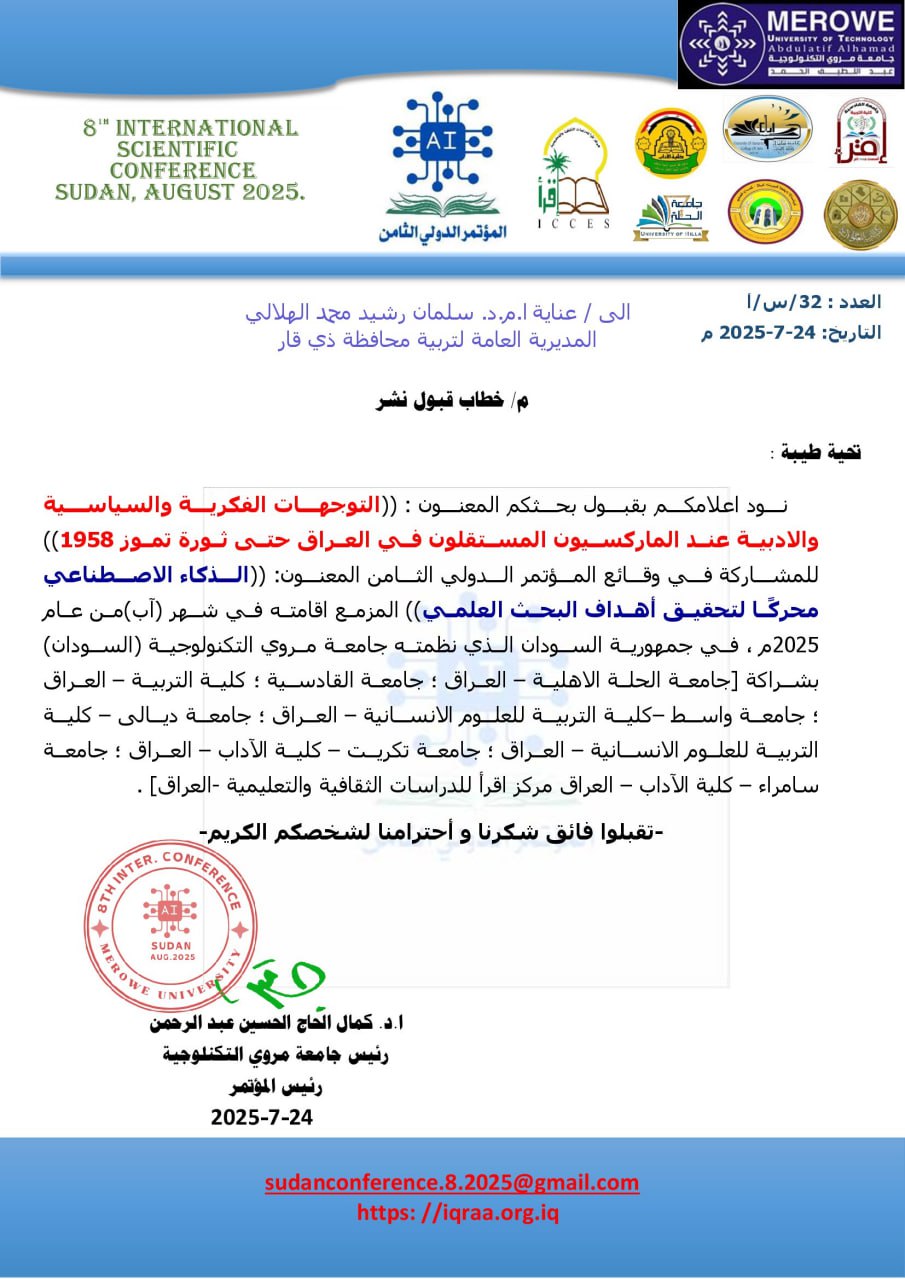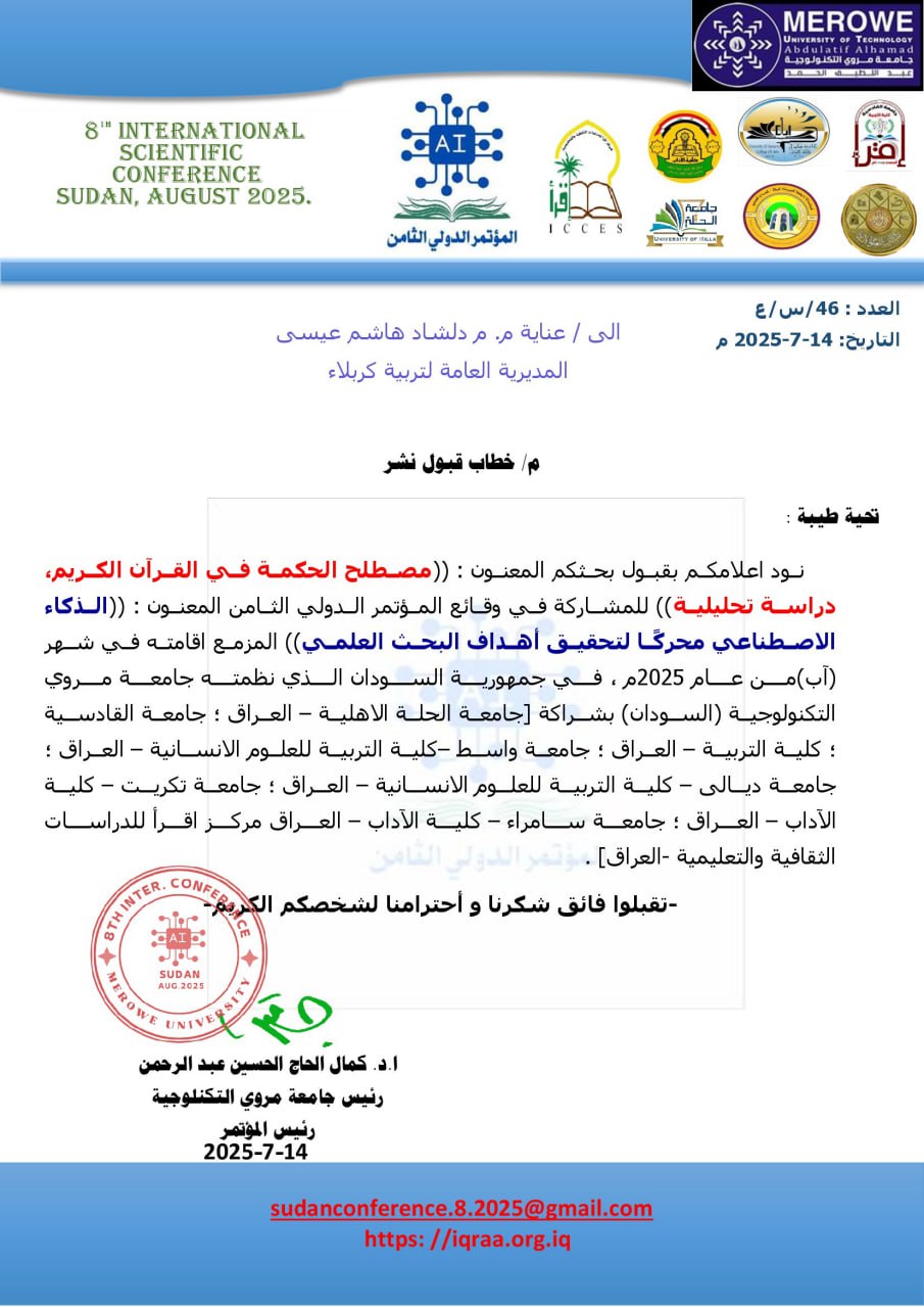 قبولات النشر للابحاث المشاكة في المؤتمر الدولي الثامن