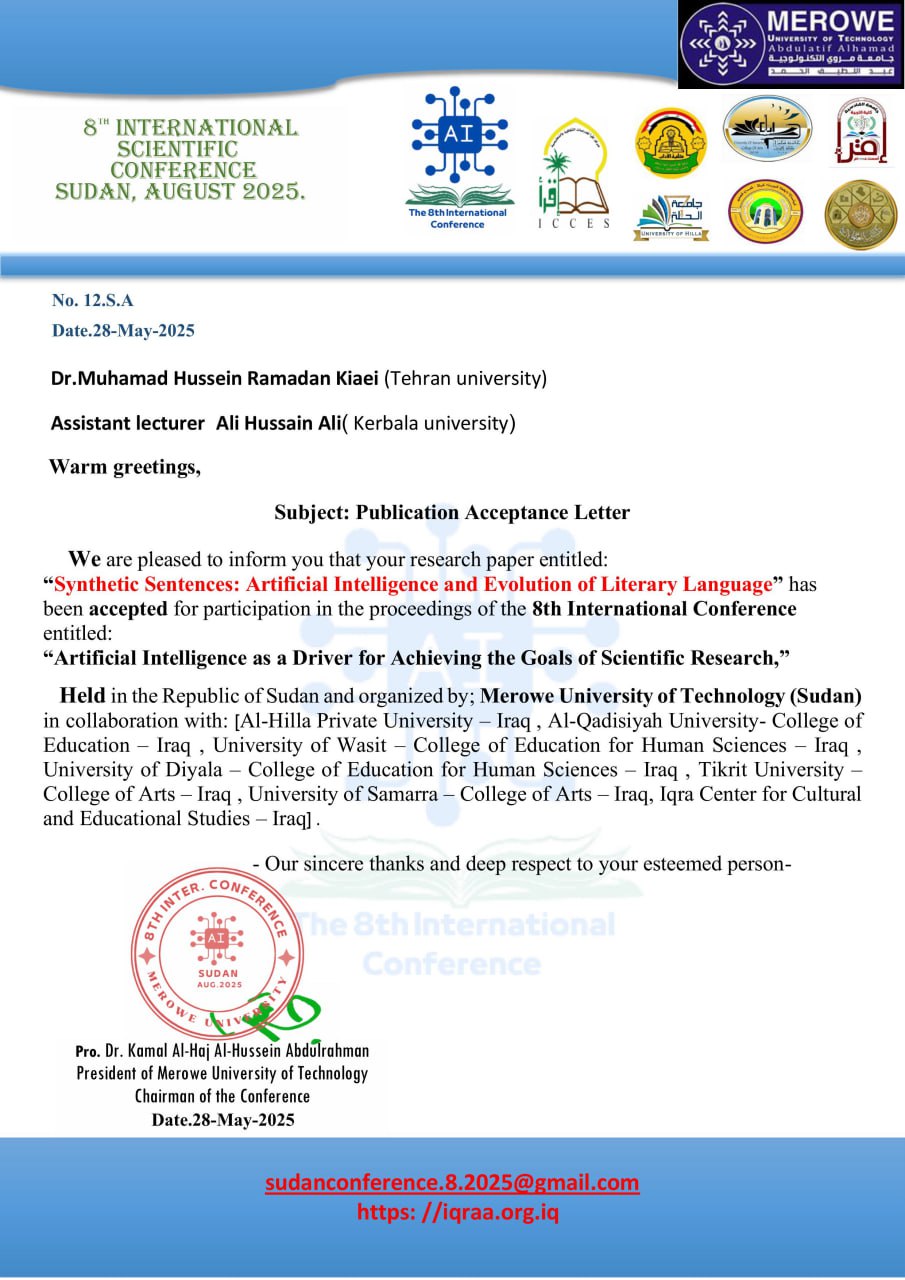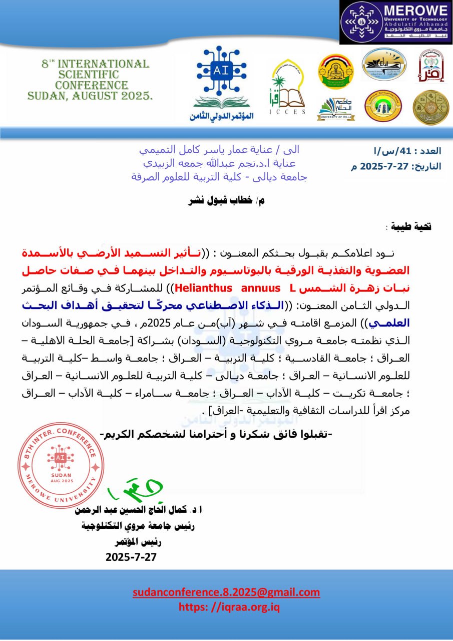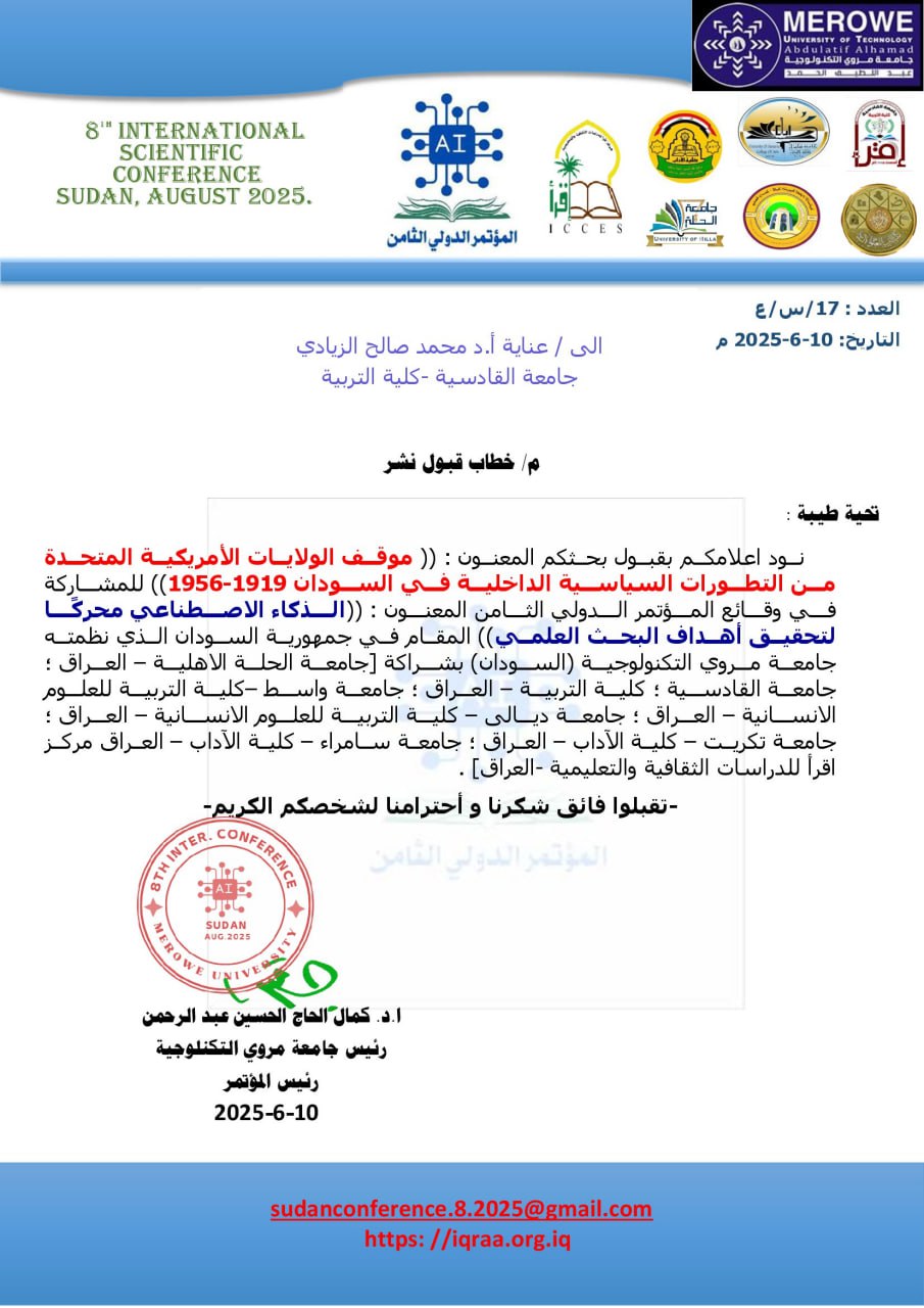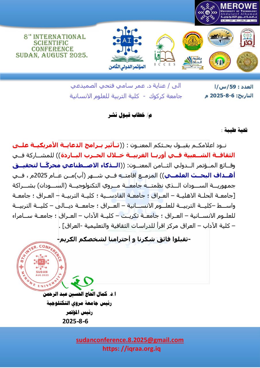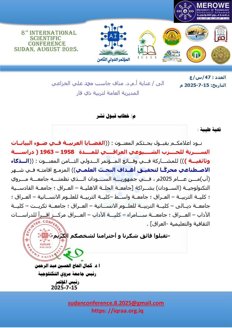 قبولات النشر للابحاث المشاكة في المؤتمر الدولي الثامن